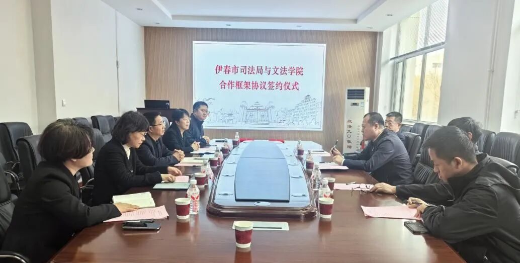 为深入贯彻落实全面依法治国战略部署,推动我校法学教育资源与龙江地方司法行政实践深度融合,2025年11月20日上午9时,伊春市司法局与冰球突破mg正规官网在冰球突破mg正规官网201-6会议室举行合作框架协议签约仪式。双方将以此次签约为契机,充分发挥各自在学术研究、人才培养与实践资源方面的优势,共同探索法治人才培养与服务地方法治建设的新模式。伊春市司法局党组书记、局长王国君及相关负责同志,冰球突破mg正规官网党委书记侯彦杰、院长朱文玉及学院领导班子出席仪式。仪式由冰球突破mg正规官网副院长刘博主持。