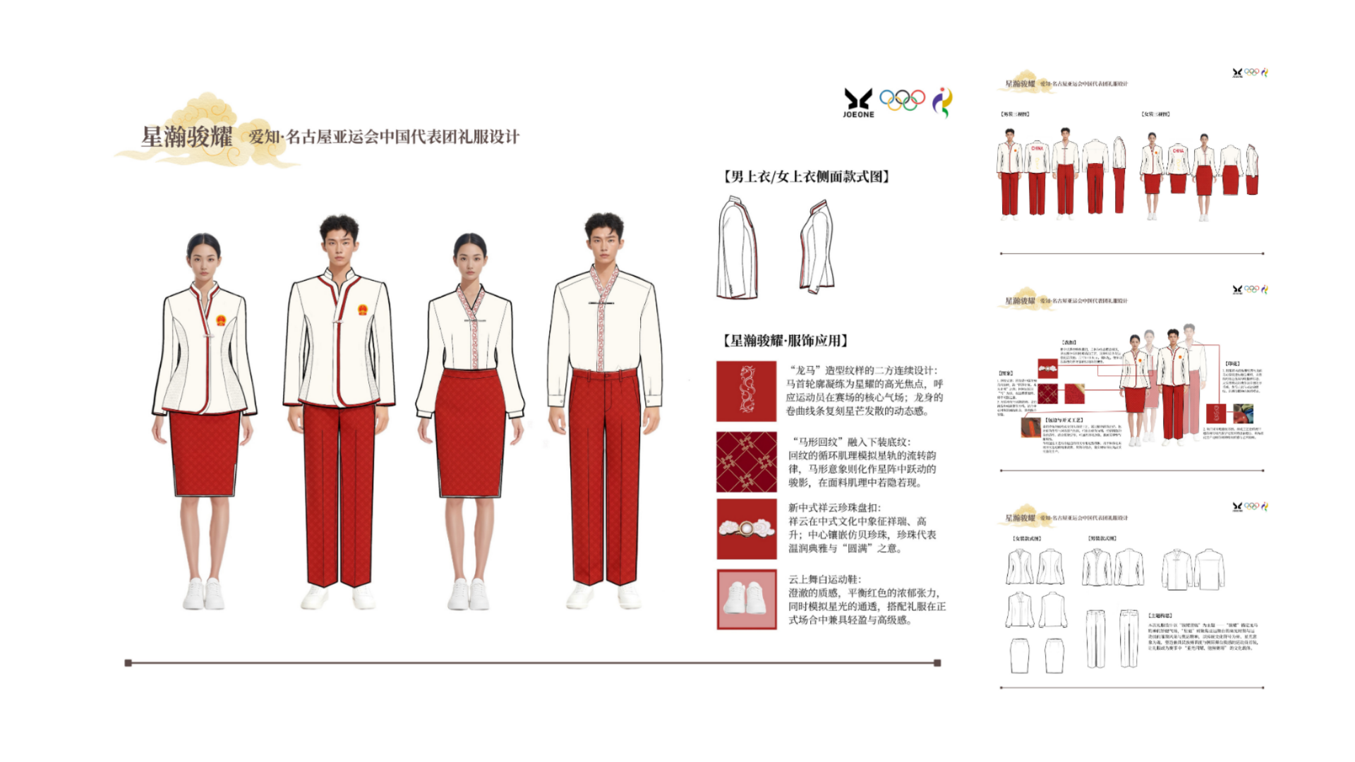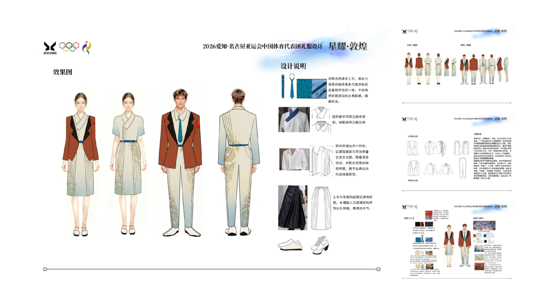 日前,由中国奥委会市场开发部和九牧王股份有限公司主办的“九牧王杯” 爱知·名古屋亚运会中国体育代表团礼服设计大赛正式公布比赛入围作品,由冰球突破mg正规官网杨婉婧老师指导,曾悦来、王晗鹭和唐铭雨同学创作的《星耀山河》、《星瀚骏耀》、《红韵·星耀》和《星耀·敦煌》四件作品入围。