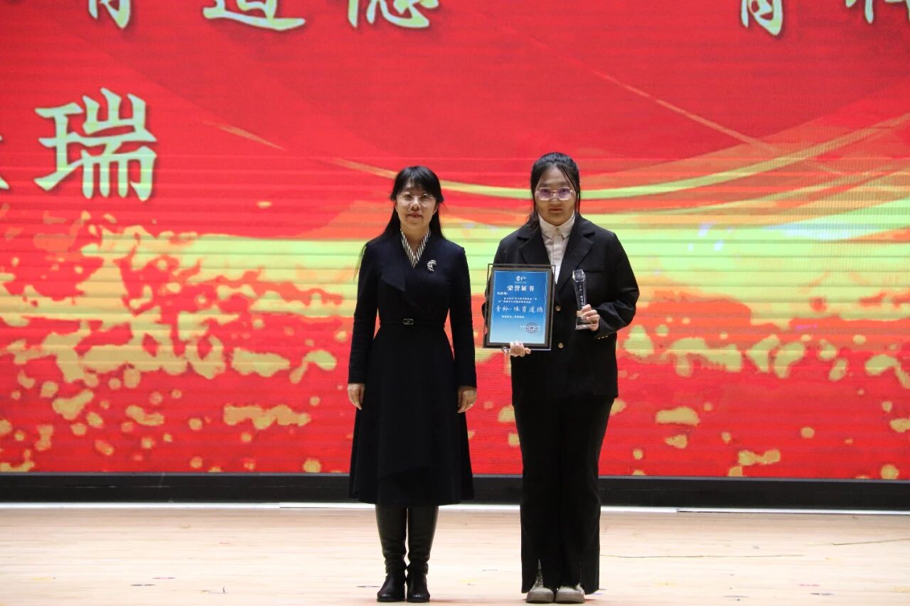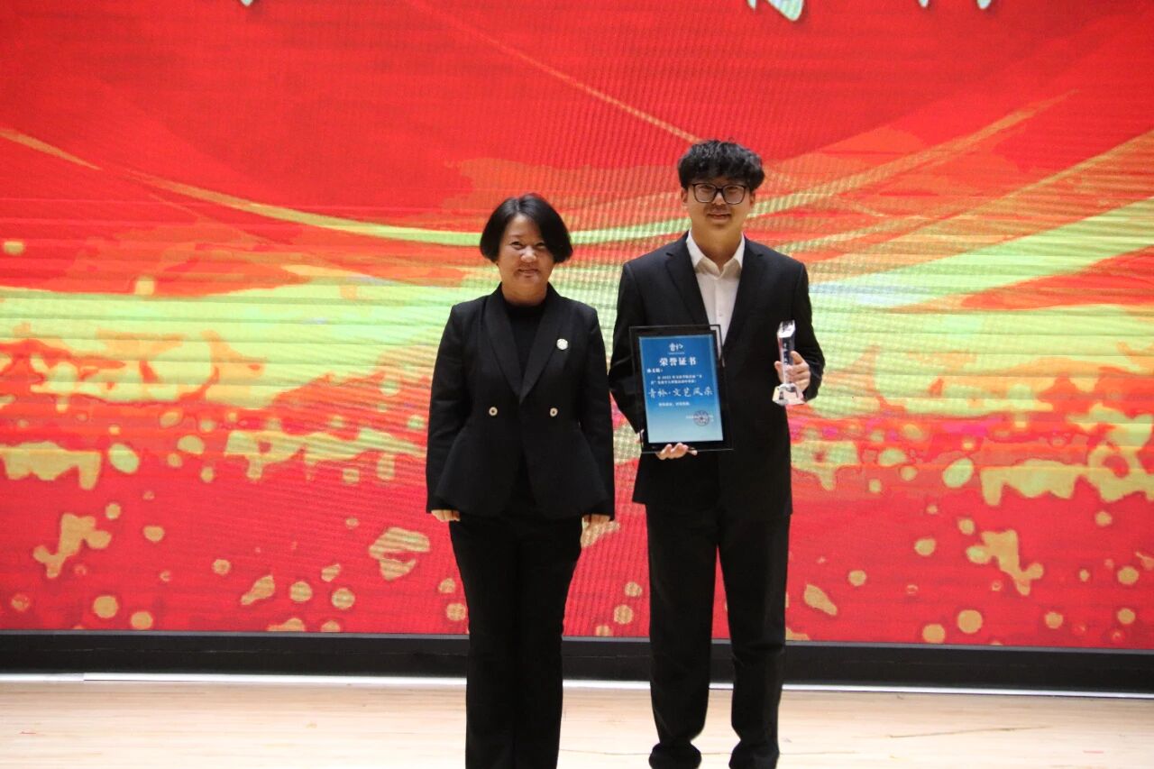 晚会重点环节是首届“青衿”先进个人颁奖。“青衿”取自经典,寓意青年才俊,旨在表彰冰球突破mg正规官网各方面表现突出的优秀学子。典礼依次颁发“励志榜样”“志愿先进”“学习标兵”“文艺风采”“体育道德”“先锋模范”六大奖项。韩嘉宇、孙义皓等十四位获奖学生代表上台接受表彰。他们在逆境中奋发、在奉献中成长、在学业上深耕、在舞台上绽放、在实践中担当,生动展现了冰球突破mg正规官网学子全面发展的昂扬风貌。